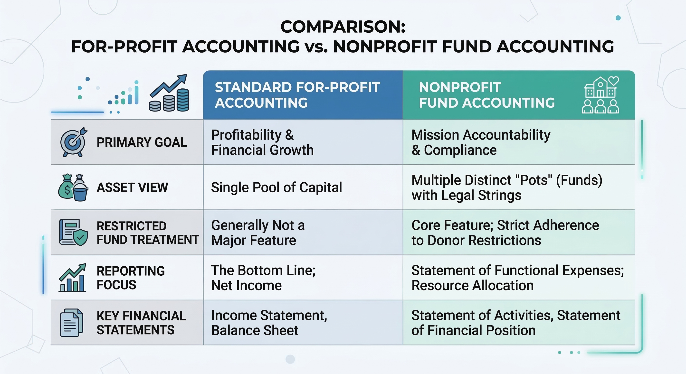 Standard accounting is built to show how much profit a company made. Fund accounting exists to prove accountability. Since your goal is mission delivery rather than the bottom line, your financial system must treat different revenue sources as separate entities.