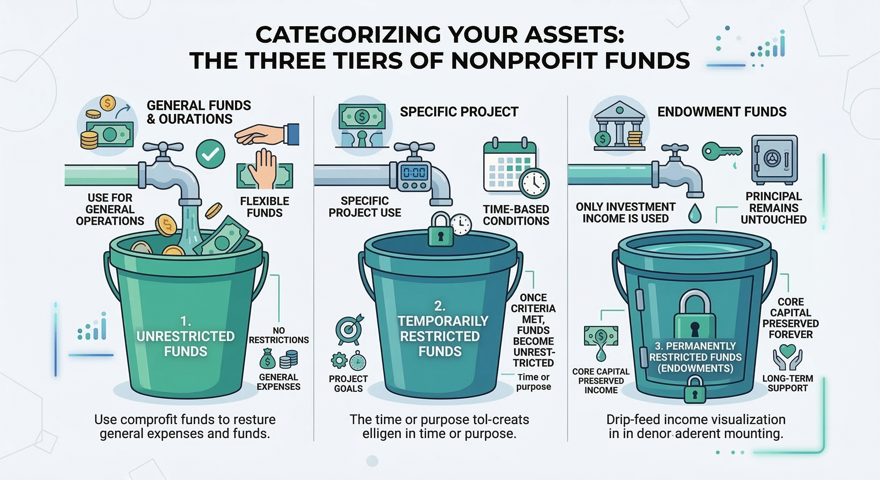 These are your most flexible assets, usually coming from general individual donations or fundraising events. You can use these to pay for salaries, utilities, or emergency repairs.