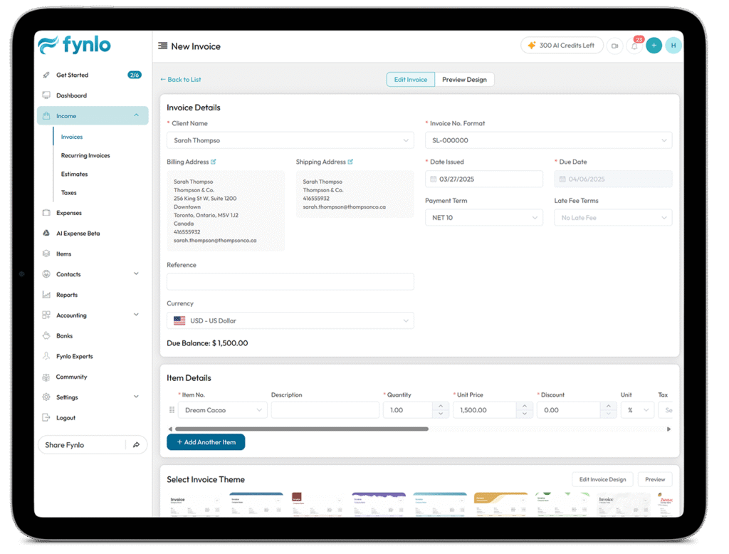 We created Fynlo to make it easy to send professional invoices, track expenses, manage books, and stay organized so you spend less time chasing payments and more time growing your business.