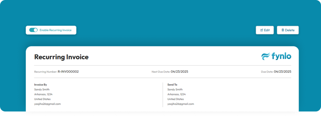 Manually creating invoices every billing cycle is time-consuming, and missing one can delay payments. With Fynlo’s Recurring Invoices, you can automate the process and focus on growing your business.